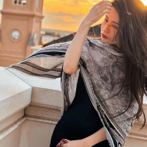 茹伊丛林印花双面双色真丝羊毛围巾秋冬空调房保暖披肩140大方巾