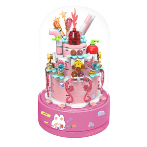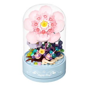兼容乐高小颗粒积木旋转音乐盒玫瑰花拼装桌面摆件跨境玩具批发