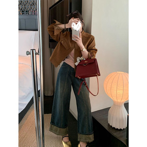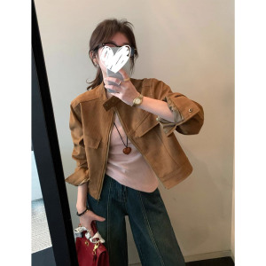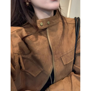 美式复古美拉德风咖色短款夹克外套女秋季新款宽松小个子上衣穿搭
