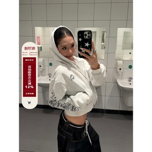 F383 美式复古哥特风字母印花短款开衫卫衣秋季辣妹休闲百搭长袖