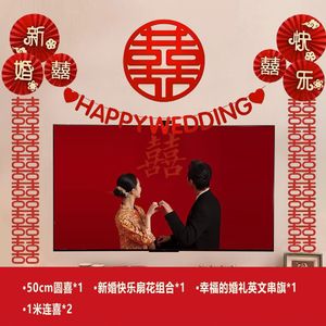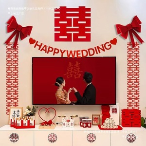 电视背景墙装饰套装结婚婚房客厅布置婚礼男方新房女方拉花婚庆