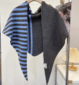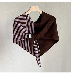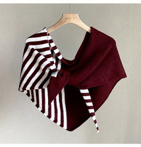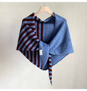 经典拼色条纹简约针织羊毛大三角披肩女春秋百搭护颈保暖围脖外搭