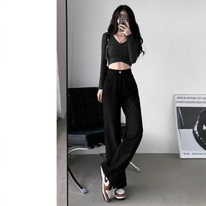 高腰直筒牛仔裤女春秋季薄款2025新款小个子宽松直筒阔腿拖地裤子