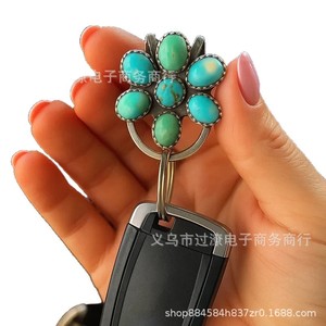 绿松石花朵包夹钥匙扣