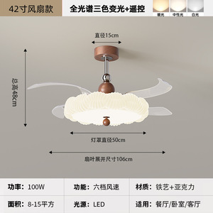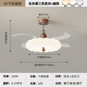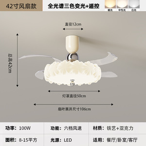 奶油风卧室风扇灯新款吸顶灯餐厅隐形静音风扇吊灯电扇一体灯