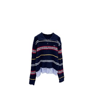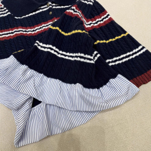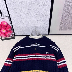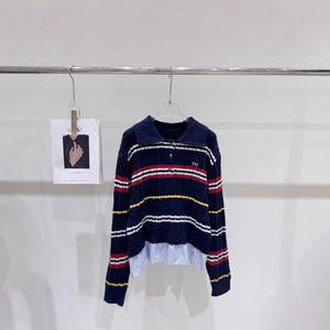 25秋季新款乌家字母提花条纹假两件针织长袖翻领套头宽松百搭毛衫