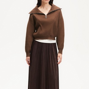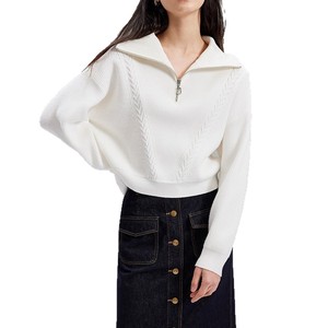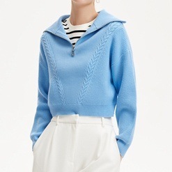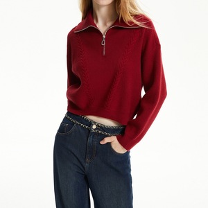 欧美短款针织女衫2025秋冬新款纯色麻花长袖立领拉链套毛衣外套