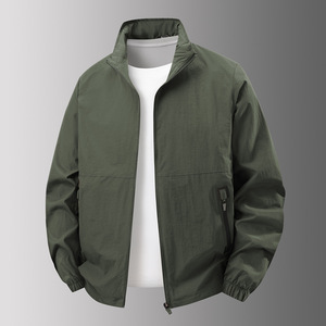 春秋季新款立领工装外套男士中年户外运动休闲宽松防风夹克可印花