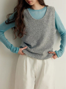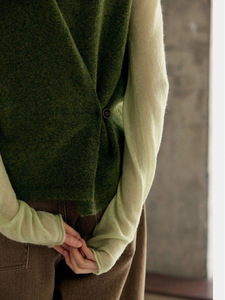 设计感灰色后背纽扣针织马甲女秋季毛衣背心叠穿别致独特上衣软糯