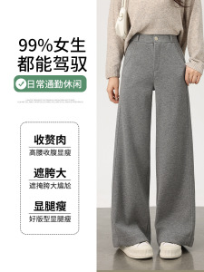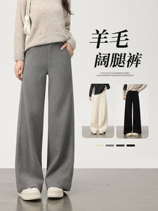 羊绒裤子女2025冬季新款高腰直筒裤女加绒加厚休闲醋酸羊毛阔腿裤