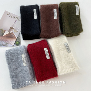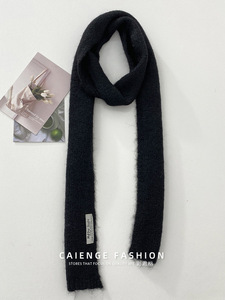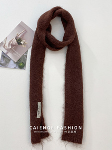 时髦穿搭微卷边马海毛细窄长条腊肠围巾女纯色小众设计百搭围脖女