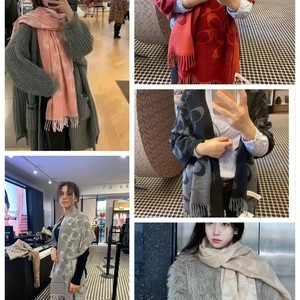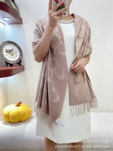 秋冬新款羊毛羊绒大牌保暖围巾C女红色本命年流苏蔻披肩百搭围脖