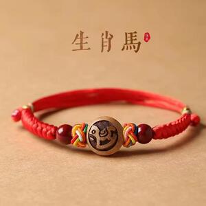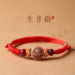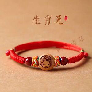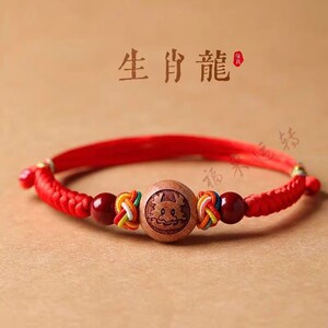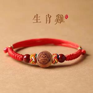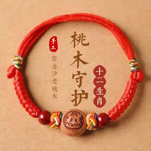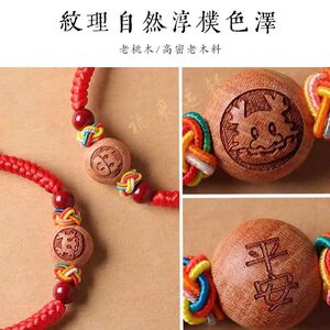 婴儿桃木朱砂护身符手链宝宝红绳防惊吓本命年手绳脚链儿童五彩绳