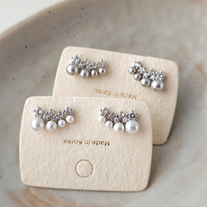 弧形锆石珍珠耳钉女小众设计感简约气质百搭高级感轻奢耳环耳饰