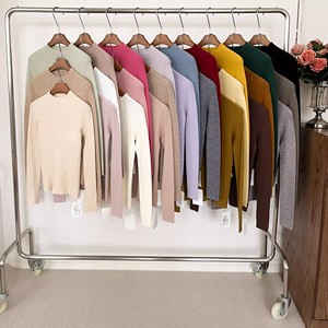 无缝一体成型半高领针织衫女秋冬纯色简约厚实螺纹上衣内搭打底衫