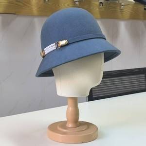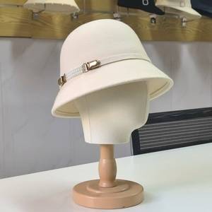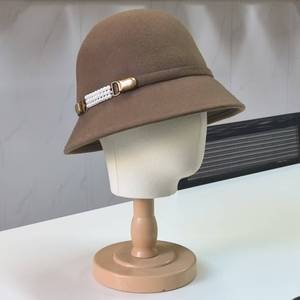 秋冬日本款CL4家复古手工珍珠链子女羊毛呢盆帽渔夫帽时装毡帽子