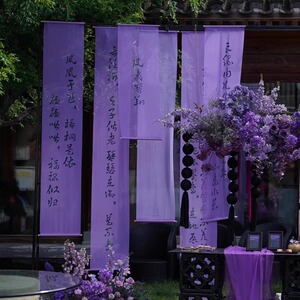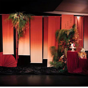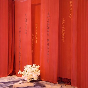 婚礼渐变纱幔书法挂布红色飘顶纱背景吊幔条幅国风婚庆半透纱定