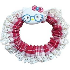 甜美可爱眼镜Kitty猫蕾丝花边头绳时尚百搭格纹小肠发圈扎发皮筋