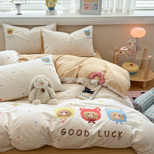 可爱100四件套纯棉被套床单床笠床上用品卡通学生宿舍三件套