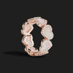 欧美时尚爱心戒指女个性气质甜美粉贝多桃心镶嵌锆钻食指戒指环女
