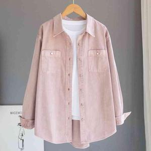 2025春秋季新款女士粉色牛仔衬衫英伦风工装宽松上衣外套小众