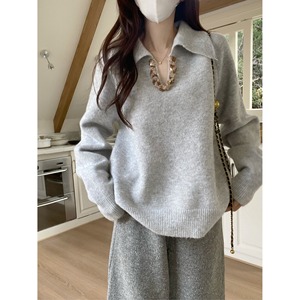 设计感重工编织翻领毛衣女冬季2025新款复古气质宽松显瘦针织上衣