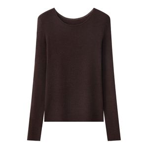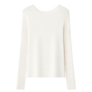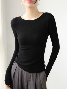 岛精无缝100%绵羊毛水波纹圆领打底衫修身叠穿长袖上衣气质针织衫