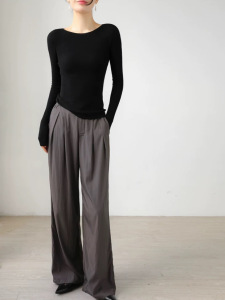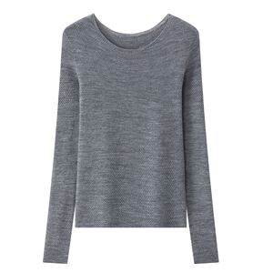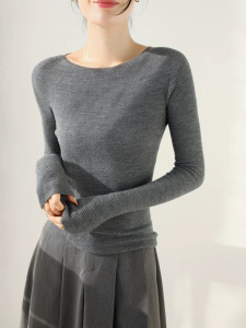 高端扬子纱无缝羊毛肌理感修身内搭女2025春圆领叠穿打底毛衣灰色