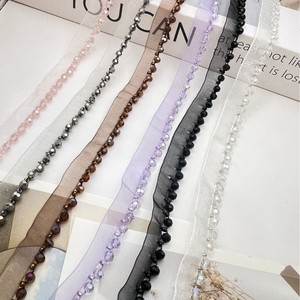 厂家新款水晶纱边钉珠DIY服装袖口领口门襟婚纱辅料配饰
