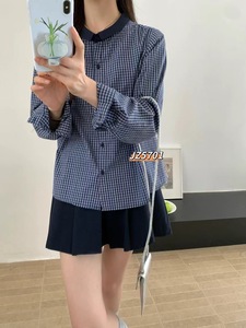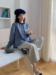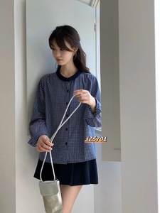 日系复古风文艺衬衫秋季新款拼接小翻领开衫显白百搭长袖上衣ZR