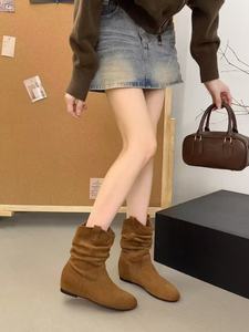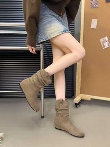内增高复古勃肯小短靴女2025年新款夏秋配裙子堆堆靴切尔西瘦瘦靴