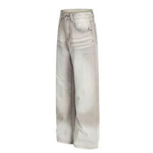 世阔FX086美式潮牌复古擦脏直筒baggy牛仔裤男女宽松阔腿休闲裤子
