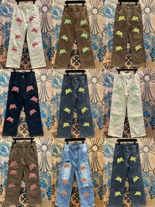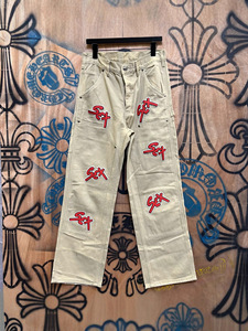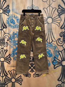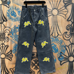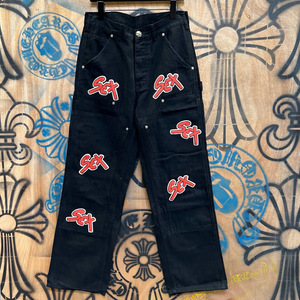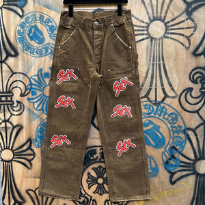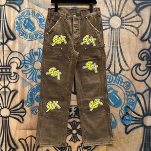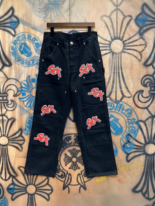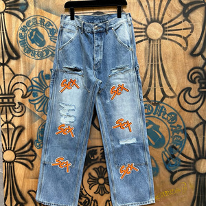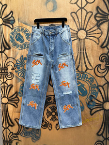 跨境美式顶级版CH克罗情侣字母拼皮镀银纽扣直筒工装牛仔裤男女款