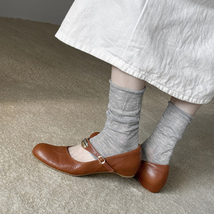 zijin家~带点记忆!文艺复古圆头内增高金属扣一字带玛丽珍单鞋女