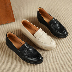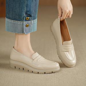 法式软羊皮厚底单鞋女2025新款秋真皮圆头中口单鞋通勤中跟奶奶鞋