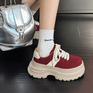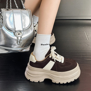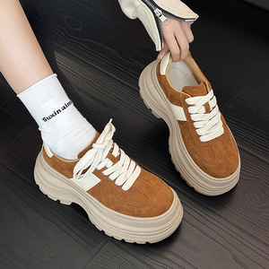2025秋新款真皮德训鞋女厚底小个子增高轻便软底休闲鞋百搭阿甘鞋