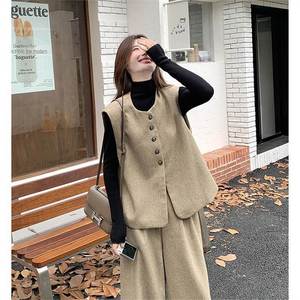 卡其色高级感马甲阔腿裤套装女秋季新款韩系小个子气质松弛两件套