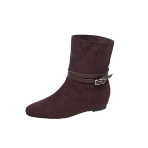 2025新款圆头平底短靴英伦风绑带马丁靴套筒显瘦磨砂皮单靴女百搭