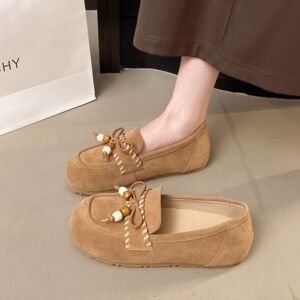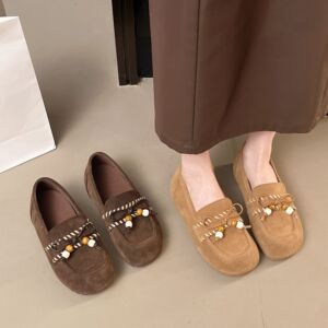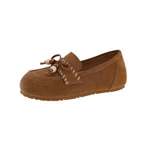 牛绒皮平底勃肯鞋女2025秋季新款复古休闲百搭单鞋真皮软底袋鼠鞋