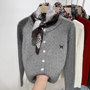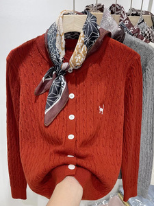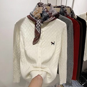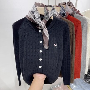 高级感春季新款复古麻花刺绣针织衫开衫女装软糯洋气减龄毛衣外套