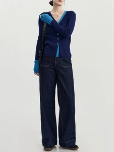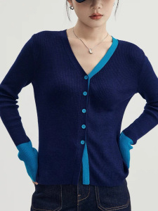 撞色假两件针织衫女秋冬2025新款设计感小众修身开衫上衣