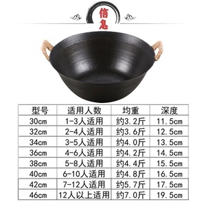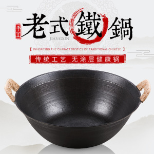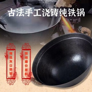 传统双耳铸铁铁锅炒菜锅老式圆底家用铸铁锅不粘锅生铁锅燃气灶