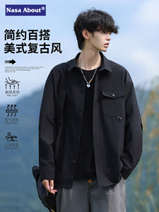 NASA宽松休闲工装长袖衬衫高级感男士春秋季2025新款衬衣外套
