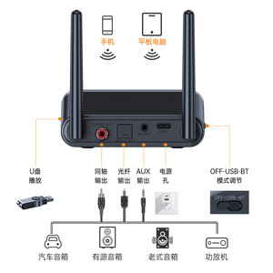 新款双天线蓝牙接收器支持U盘播放老音响电视功放机专用跨境专供