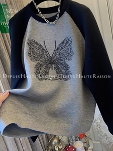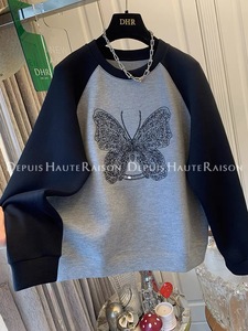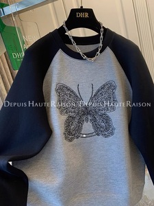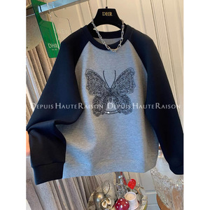 大码蝴蝶刺绣时尚百搭圆领卫衣女2025秋季插肩袖宽松百搭减龄上衣