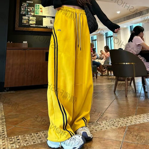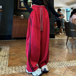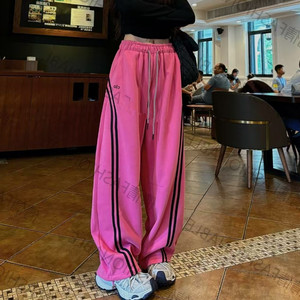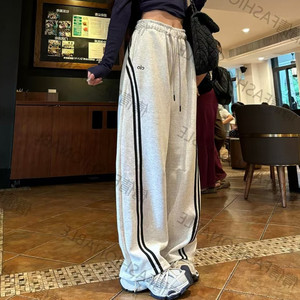 2025秋新款字母刺绣高腰显瘦窄版阔腿弯刀裤女时尚宽松休闲运动裤