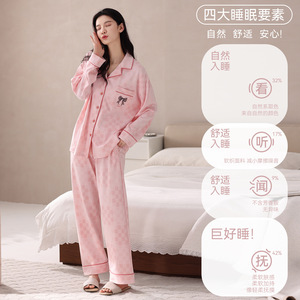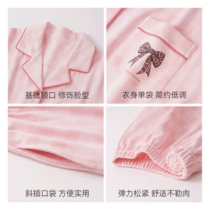【抗菌拉架棉】春秋季新款女士睡衣纯棉长袖粉色蝴蝶结家居服套装