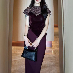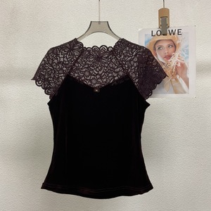 南油代发25秋款上新法式时尚蕾丝拼植绒钉珠上衣遮肉显瘦百搭小衫