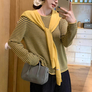实拍~韩系条纹慵懒风宽松上衣两件套