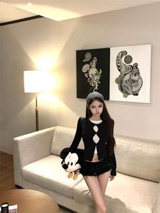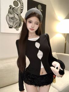 甜辣妹设计感假两件镂空长袖T恤女装秋季波点打底衫内搭修身上衣